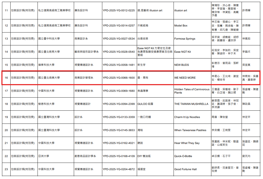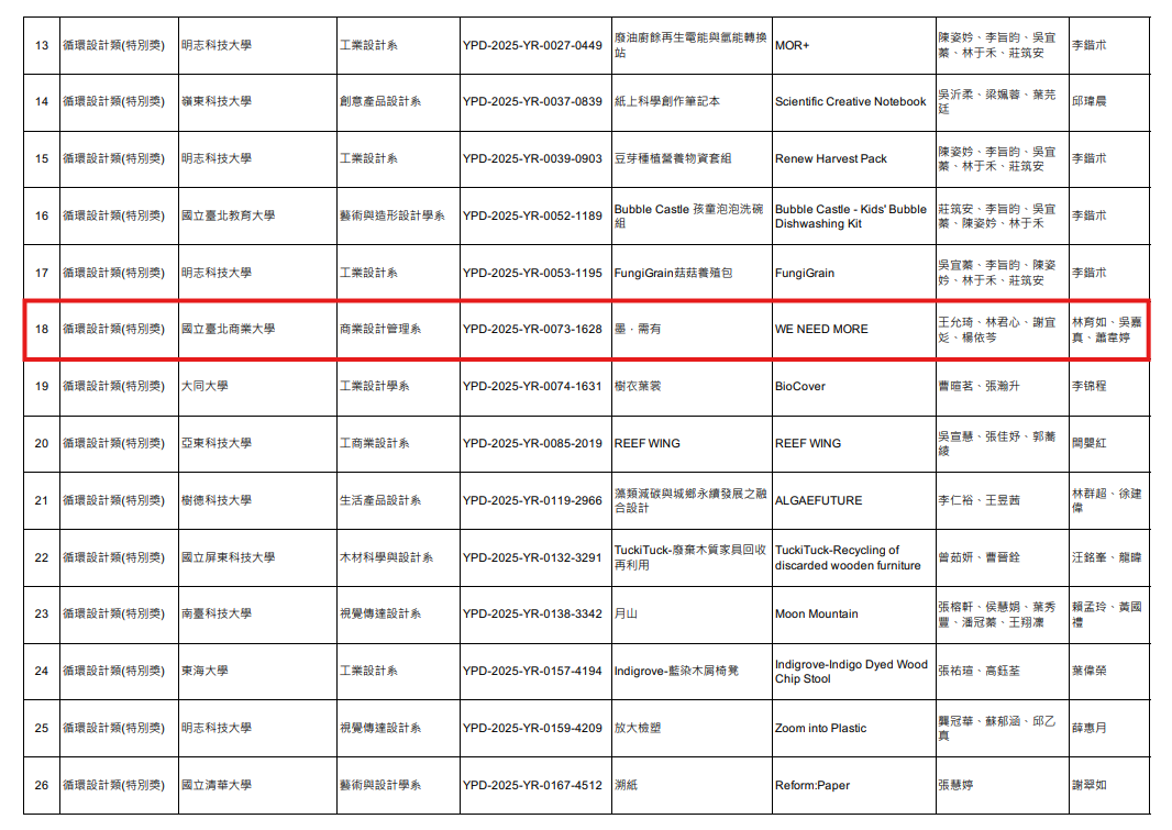 【賀】本系楊依芩、林君心、王允琦、謝宜彣同學以專題作品《墨,需有》參加「2025金點新秀設計獎」榮獲三項入圍
