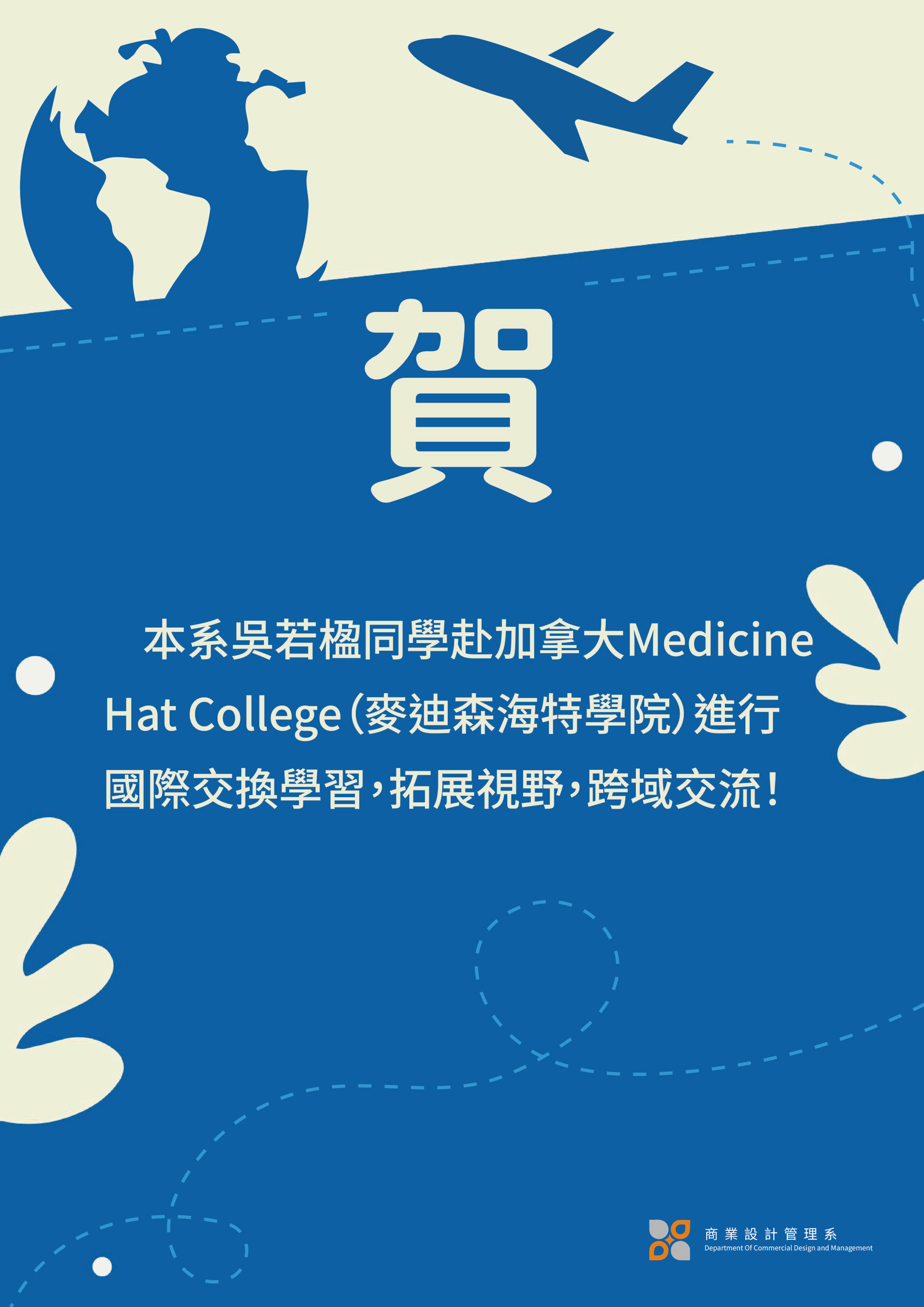 【賀】本系吳若楹同學赴加拿大Medicine Hat College(麥迪森海特學院)進行國際交換學習,拓展視野,跨域交流!